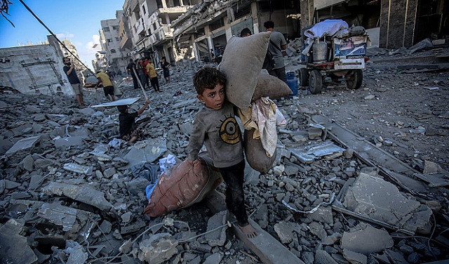 destruction and crowdedness in Gaza City, October 13, 2025.