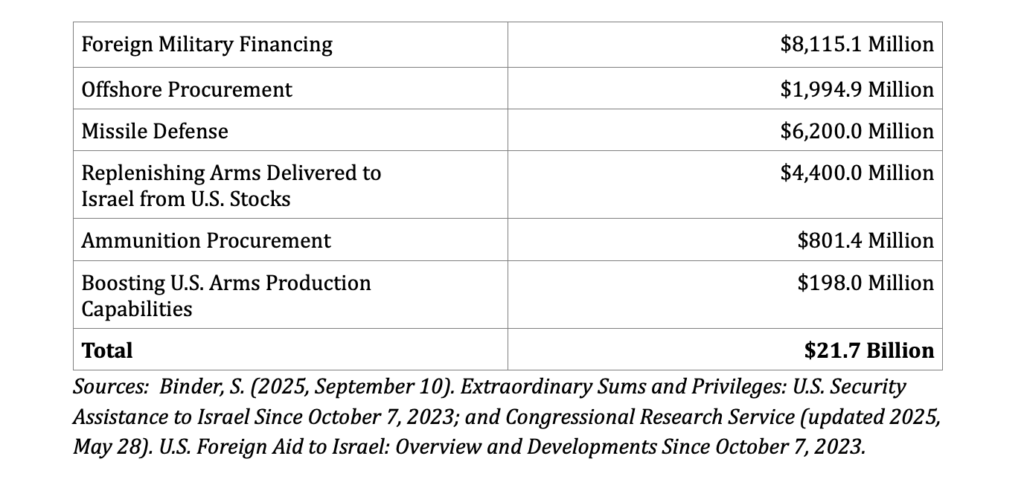 Oct. 2023 – Sept. 2025, to enable Israel to launch and