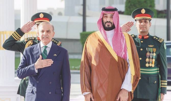 Pakistan's Premier, Shehbaz Sharif, along with Saudi Crown