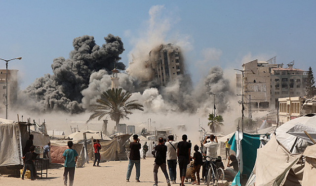 residential towers in Gaza, representing the sadism and