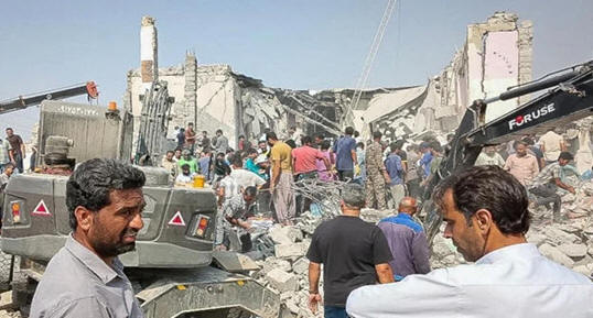 the rubble of their homes, which were